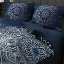 Tmavě modré bavlněné saténové povlečení MANDALA 160x200 cm