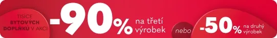 AKCE: Sleva 50% na druhý nebo 90% na třetí produkt z kategorie "bytové doplňky". Akce trvá od 03.09.2025 do 20.09.2025.