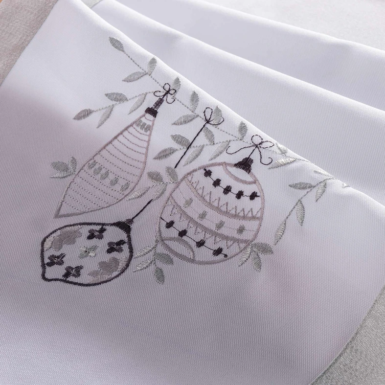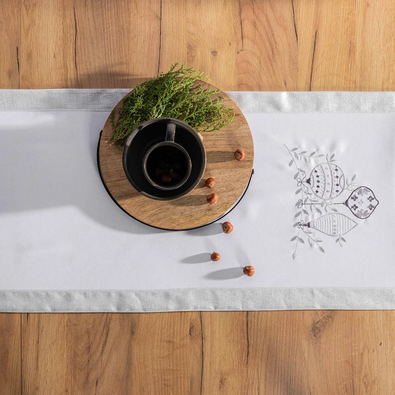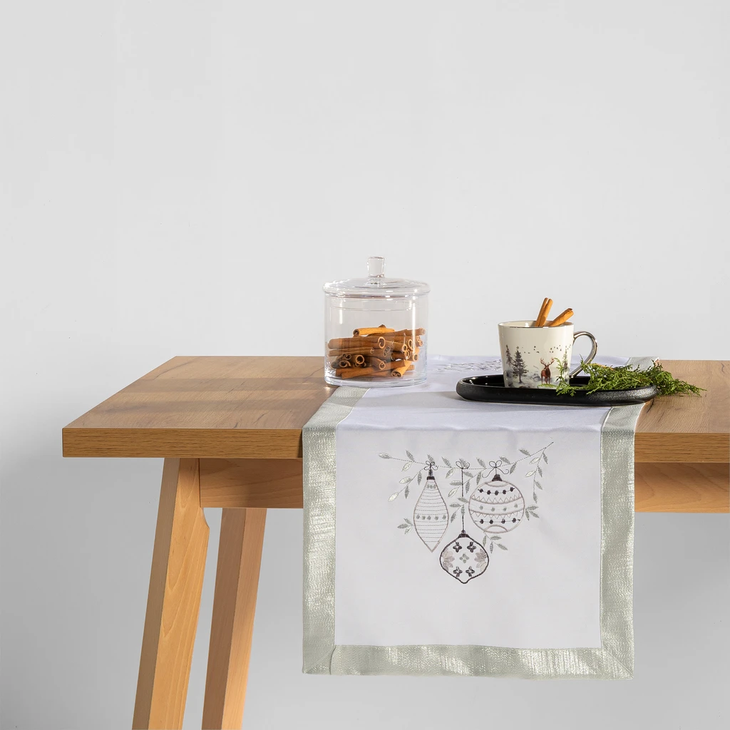 Běhoun na stůl s baňkami stříbrno-bílý JULE 110x160 cm