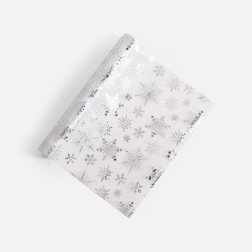 Stříbrný běhoun v roli SNĚHOVÉ VLOČKY 28x300 cm