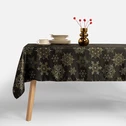 Černý ubrus GLORIA o rozměrech 140 x 220 cm s lesklým vzorem sněhových vloček dodá vánočnímu aranžmá elegantní nádech.