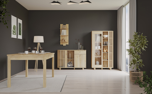 Nábytek do jídelny a obývacího pokoje od jednoho výrobce také přináší úspory. V našem obchodě často pořádáme akce, při kterých získáte slevu na další nákupy nábytku. Za stůl, vitrínu a komodu koupené dohromady zaplatíte méně, než kdybyste je objednávali samostatně. Nákup na jednom místě znamená také jednu dopravu, která je levnější.