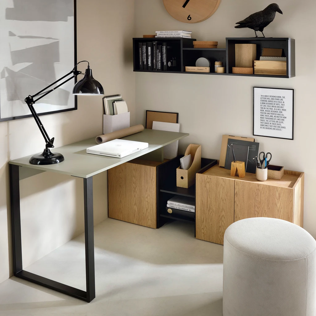 Psací stůl SERGIO lze umístit podle vašich představ - podél celé délky stěny, do rohu místnosti nebo s horní deskou odsunutou od stěny.