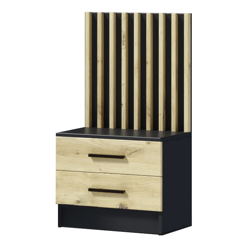 Pomůže vám v tom noční stolek LAMELLO. Je vybaven dvěma zásuvkami, do kterých můžete uložit kosmetiku, knihy a dokonce i sladké občerstvení. Na jeho horní desce můžete postavit budík, lampičku nebo odložit hrnek s horkým čajem.