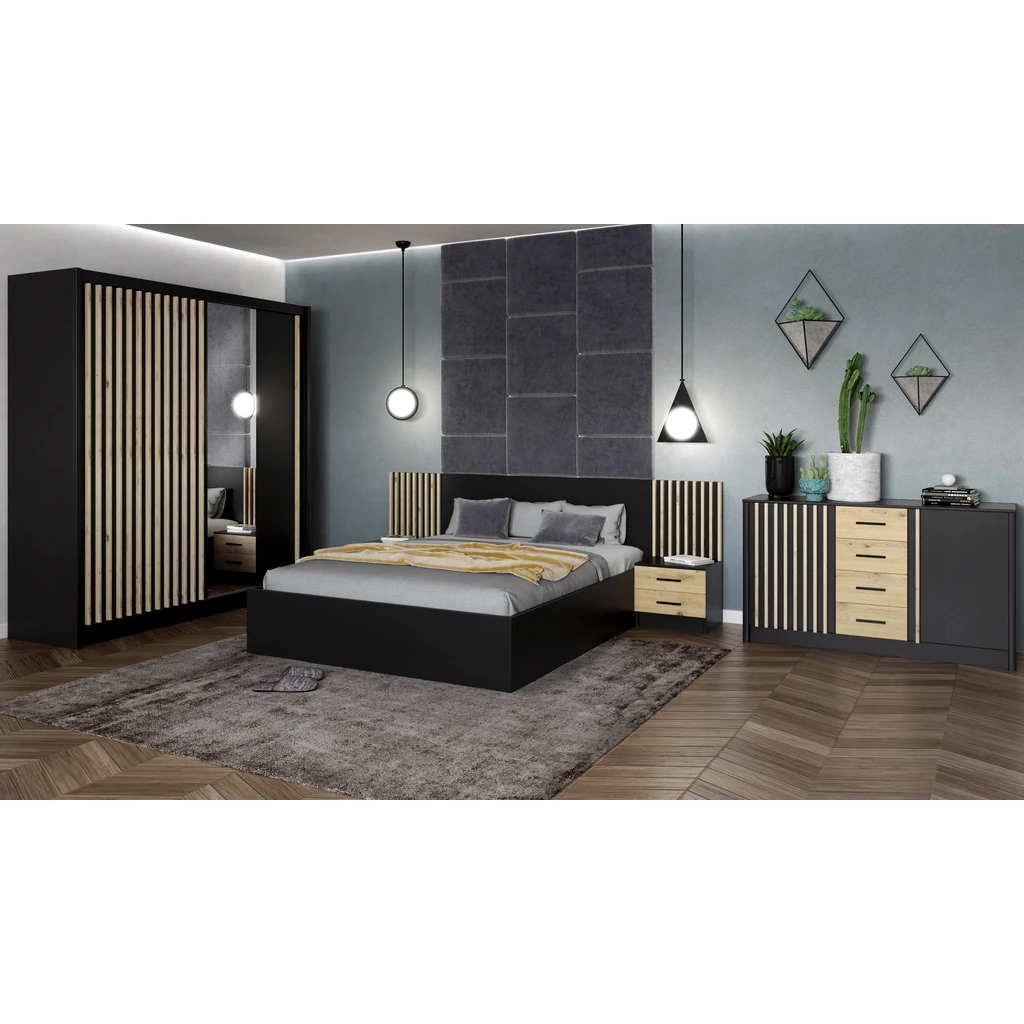 • Přední strana je kombinací černého matu a laminátu v barvě dub artisan.