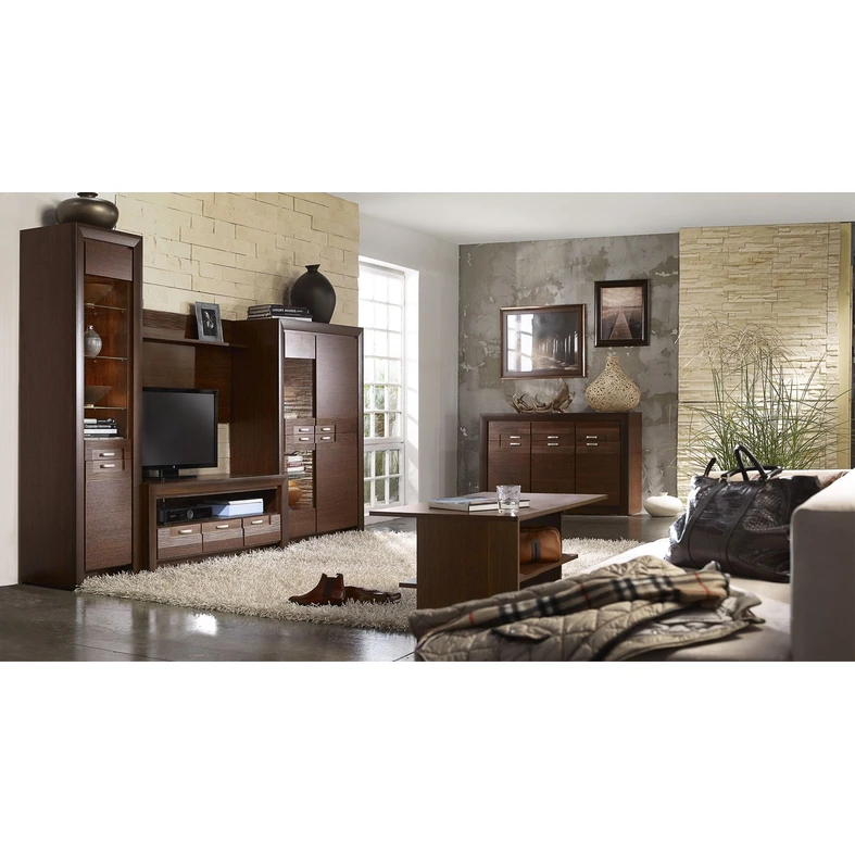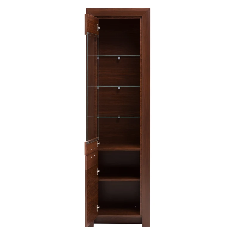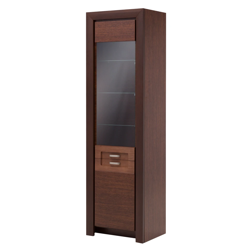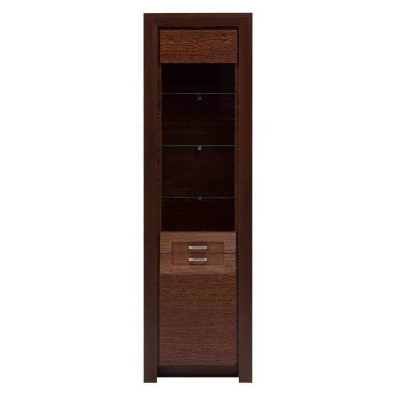Úzká tmavě hnědá vitrína PARIS + osvětlení